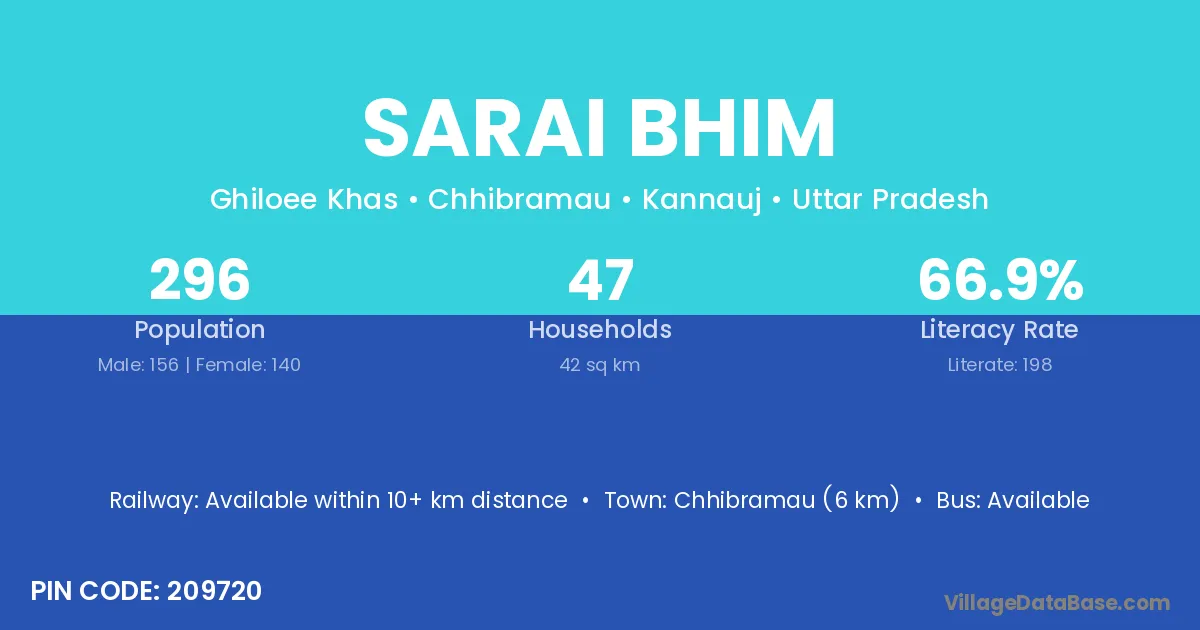 Chhibramau (6 km) is the nearest town to Sarai Bhim village for major economic activities and is located approximately 6 km away.