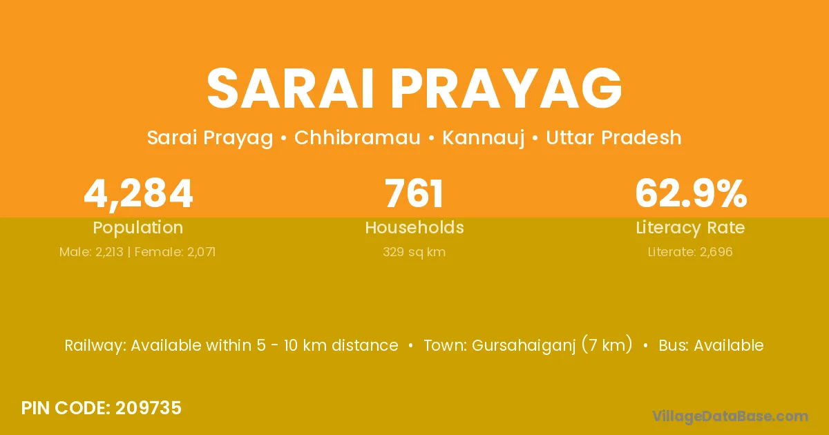 Gursahaiganj (7 km) is the nearest town to Sarai Prayag village for major economic activities and is located approximately 7 km away.