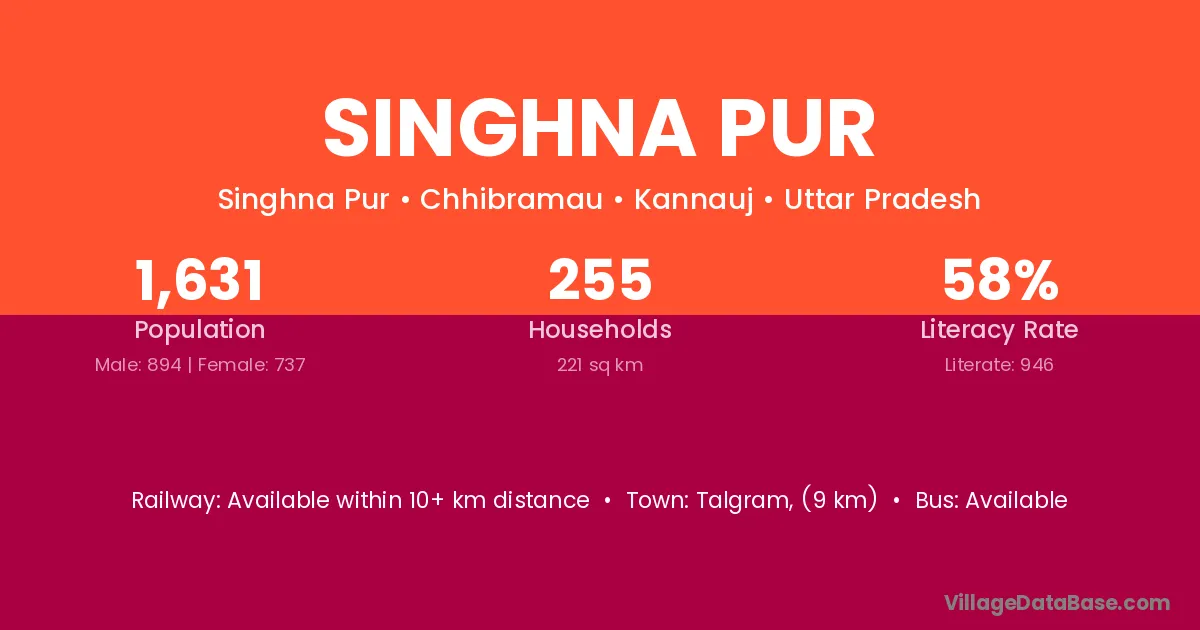 Talgram, (9 km) is the nearest town to Singhna Pur village for major economic activities and is located approximately 9 km away.