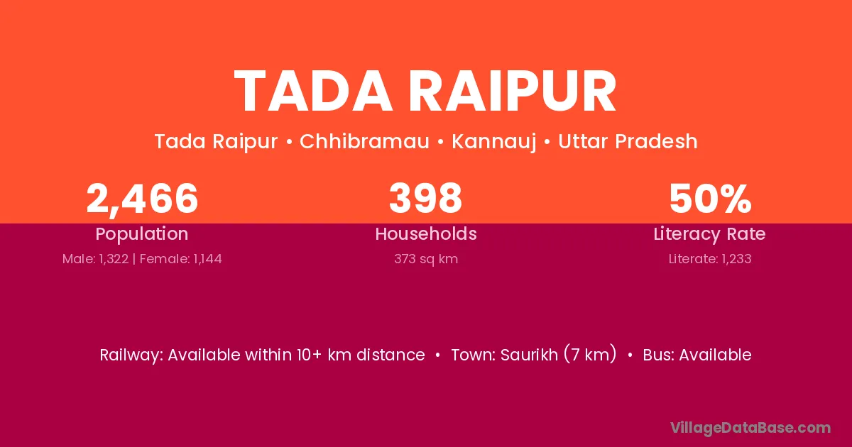 Saurikh (7 km) is the nearest town to Tada Raipur village for major economic activities and is located approximately 7 km away.