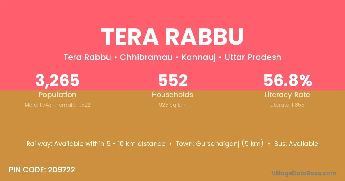 Tera Rabbu village is located in the Chhibramau Tehsil of the Kannauj district in Uttar Pradesh .