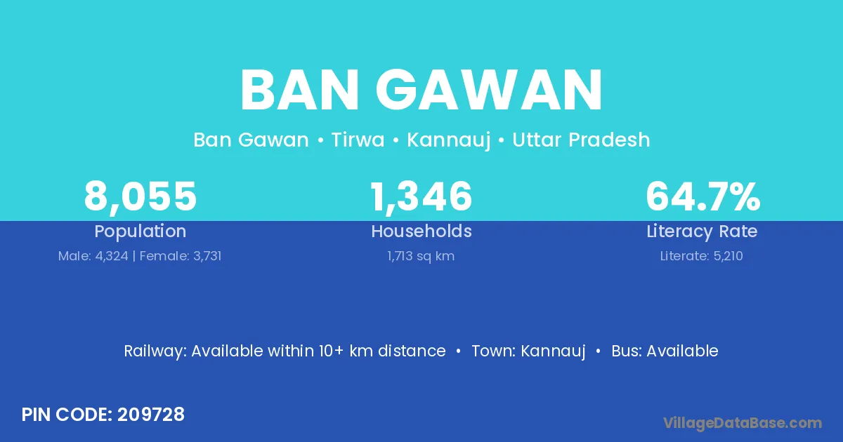 Kannauj is the nearest town to Ban Gawan village for major economic activities
