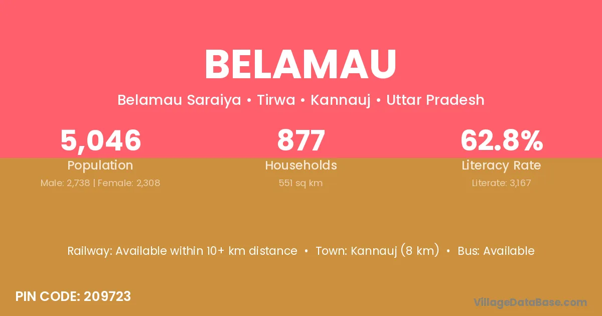 Kannauj (8 km) is the nearest town to Belamau village for major economic activities and is located approximately 8 km away.