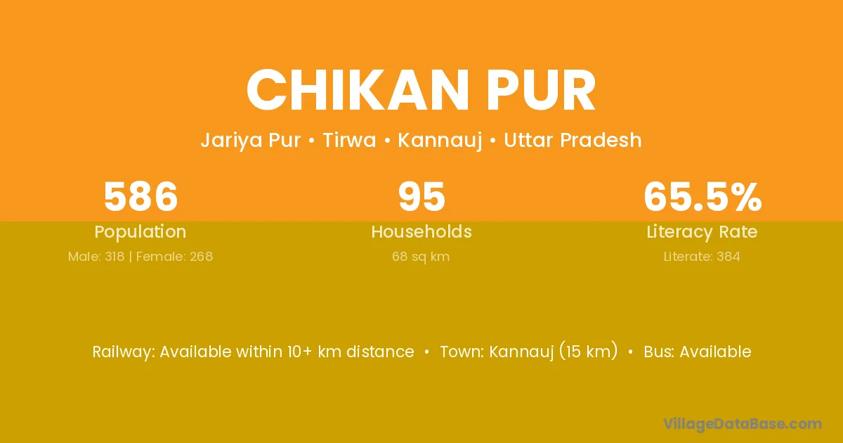 Kannauj (15 km) is the nearest town to Chikan Pur village for major economic activities and is located approximately 15 km away.