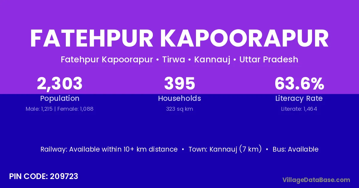 Kannauj (7 km) is the nearest town to Fatehpur Kapoorapur village for major economic activities and is located approximately 7 km away.
