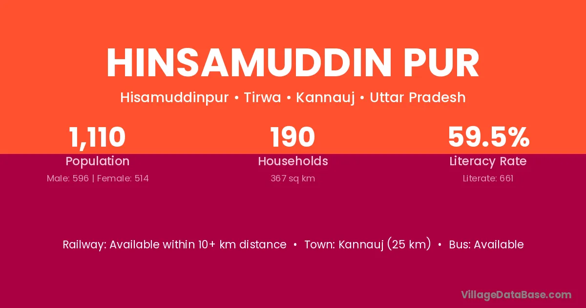 Kannauj (25 km) is the nearest town to Hinsamuddin Pur village for major economic activities and is located approximately 25 km away.