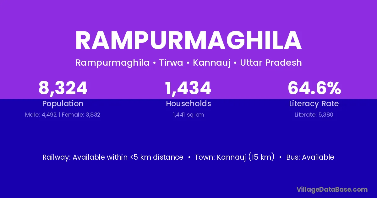 Kannauj (15 km) is the nearest town to Rampurmaghila village for major economic activities and is located approximately 15 km away.