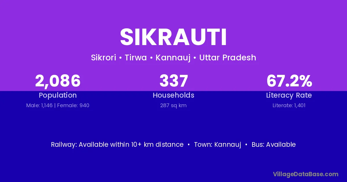 Kannauj is the nearest town to Sikrauti village for major economic activities