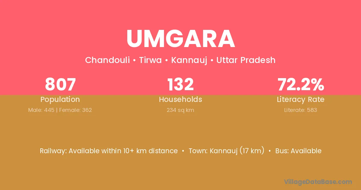 Kannauj (17 km) is the nearest town to Umgara village for major economic activities and is located approximately 17 km away.