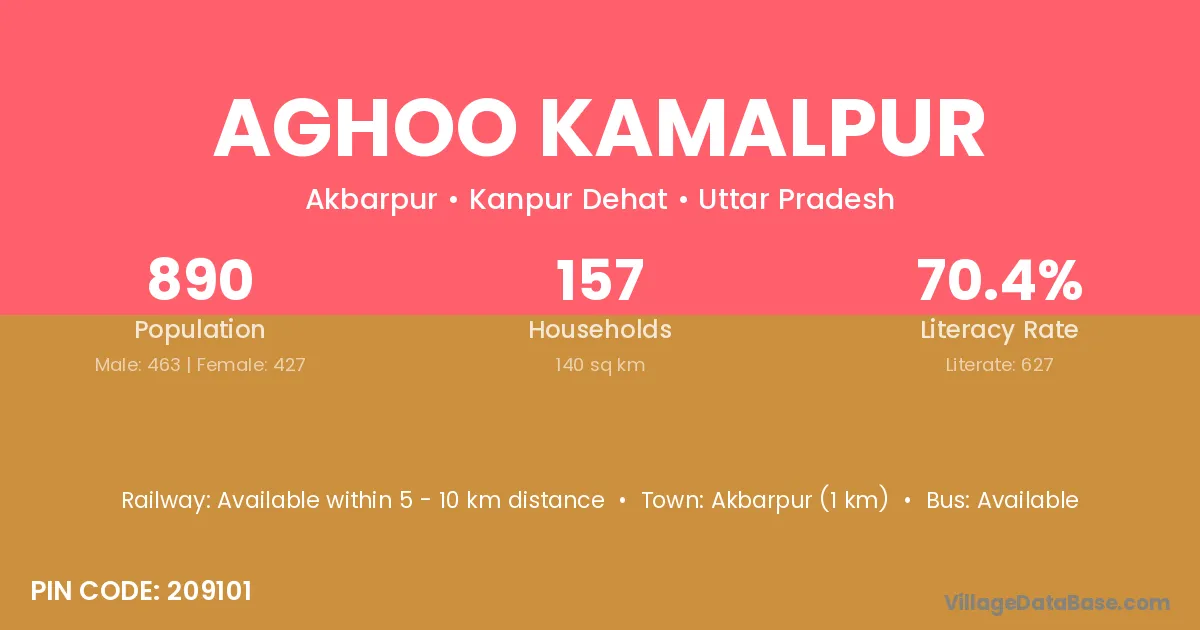 Akbarpur (1 km) is the nearest town to Aghoo Kamalpur village for major economic activities and is located approximately 1 km away.