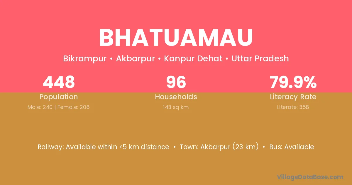 Akbarpur (23 km) is the nearest town to Bhatuamau village for major economic activities and is located approximately 23 km away.