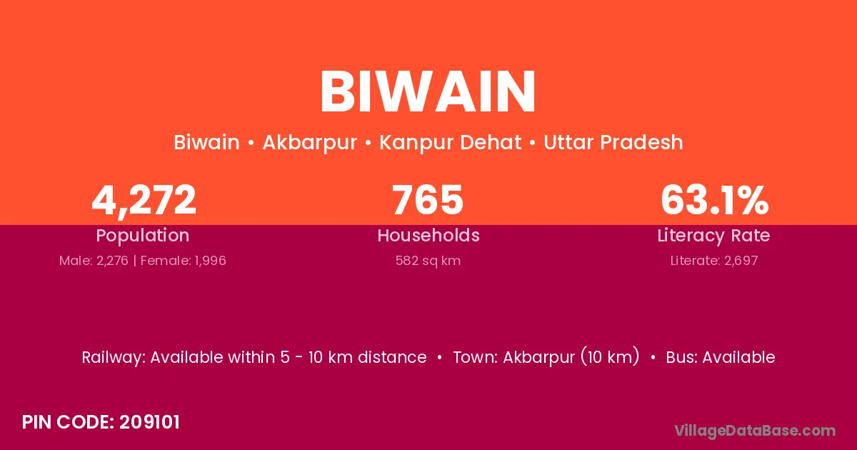 Akbarpur (10 km) is the nearest town to Biwain village for major economic activities and is located approximately 10 km away.