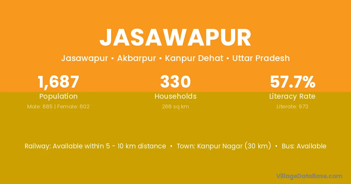 Kanpur Nagar (30 km) is the nearest town to Jasawapur village for major economic activities and is located approximately 30 km away.
