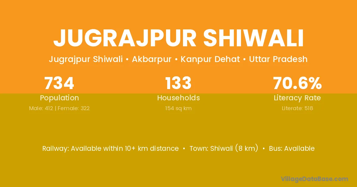 Jugrajpur Shiwali village has a total population of 734 people, of which 412 are males and 322 are females.