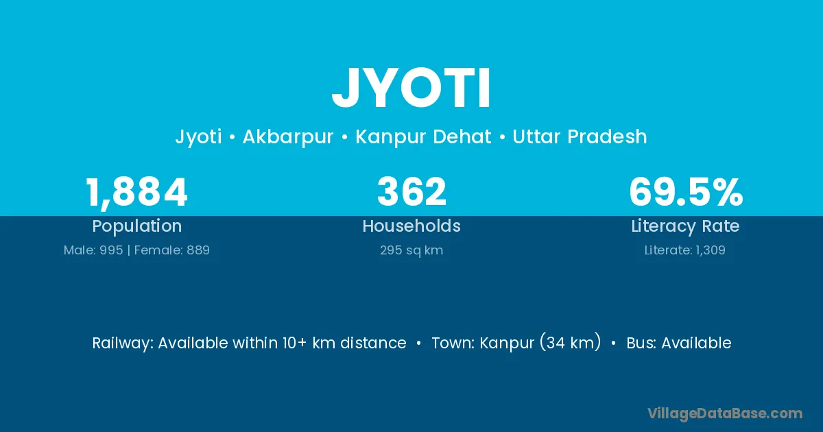 Kanpur (34 km) is the nearest town to Jyoti village for major economic activities and is located approximately 34 km away.