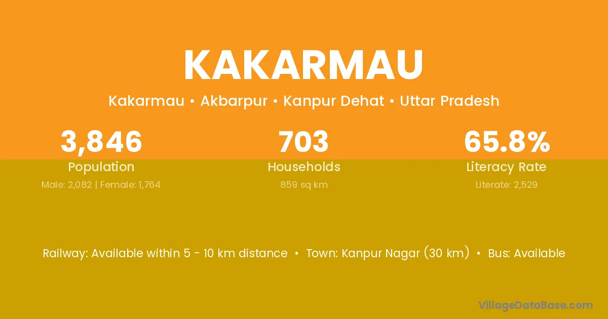 Kanpur Nagar (30 km) is the nearest town to Kakarmau village for major economic activities and is located approximately 30 km away.