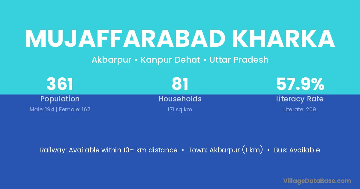 Akbarpur (1 km) is the nearest town to Mujaffarabad Kharka village for major economic activities and is located approximately 1 km away.