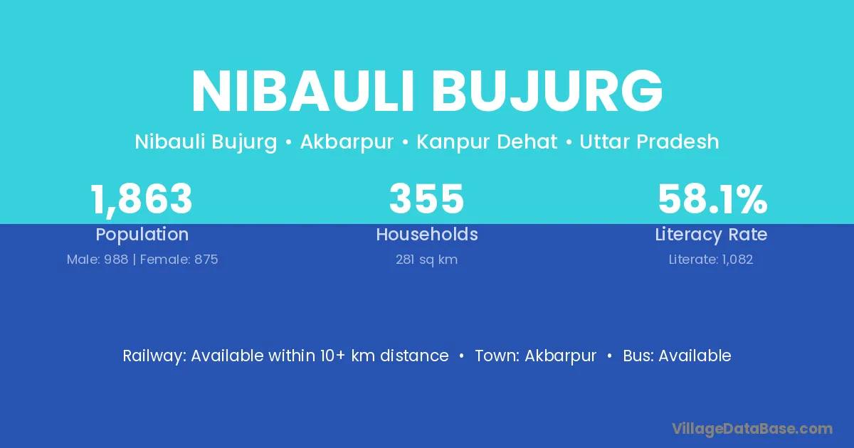Nibauli Bujurg village has a total population of 1,863 people, of which 988 are males and 875 are females.