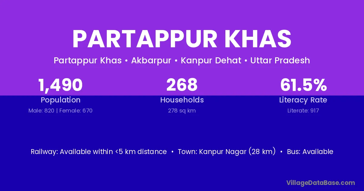 Kanpur Nagar (28 km) is the nearest town to Partappur Khas village for major economic activities and is located approximately 28 km away.