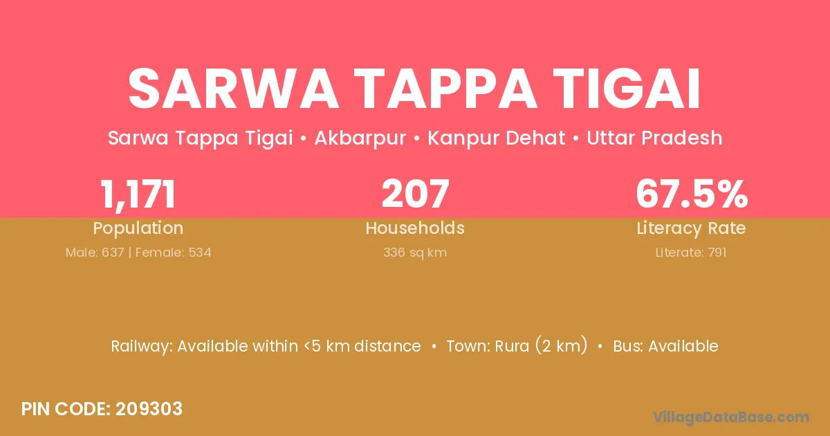 Sarwa Tappa Tigai village is located in the Akbarpur Tehsil of the Kanpur Dehat district in Uttar Pradesh .