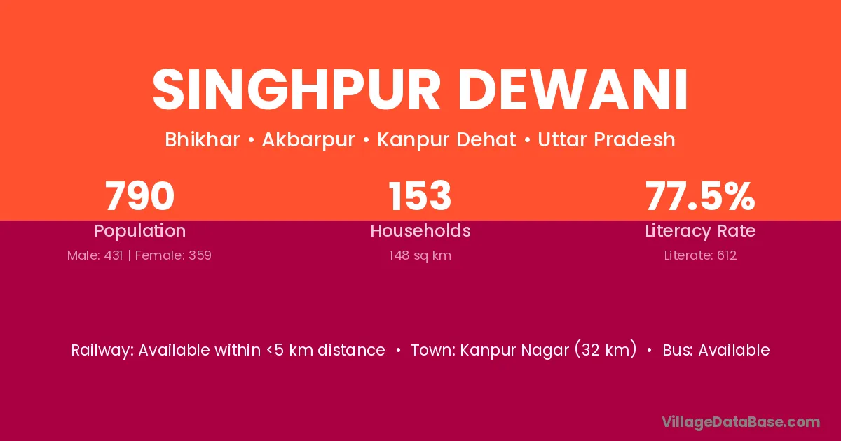 Kanpur Nagar (32 km) is the nearest town to Singhpur Dewani village for major economic activities and is located approximately 32 km away.