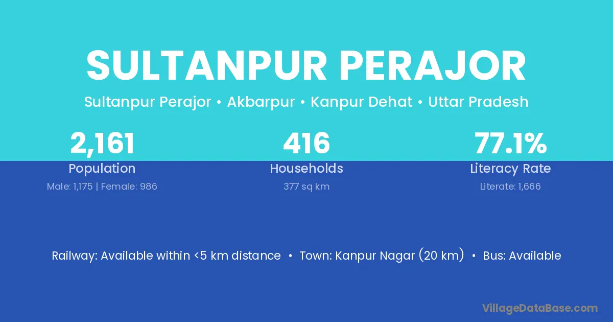 Kanpur Nagar (20 km) is the nearest town to Sultanpur Perajor village for major economic activities and is located approximately 20 km away.