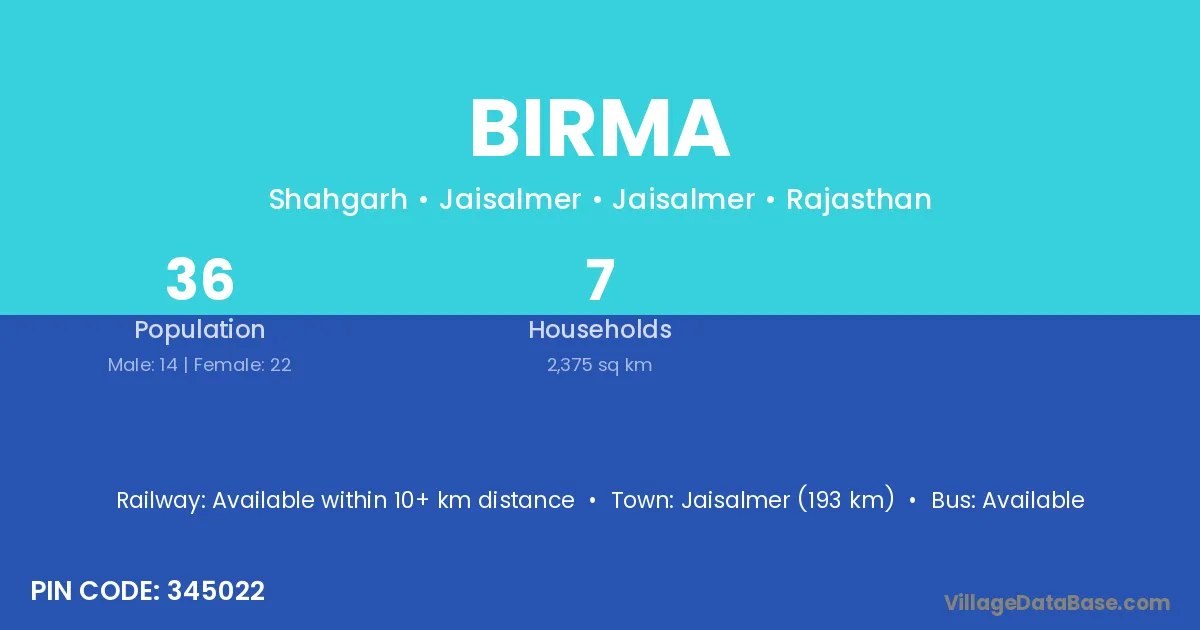 Birma village has a total population of 1,855 people, of which 961 are males and 894 are females.