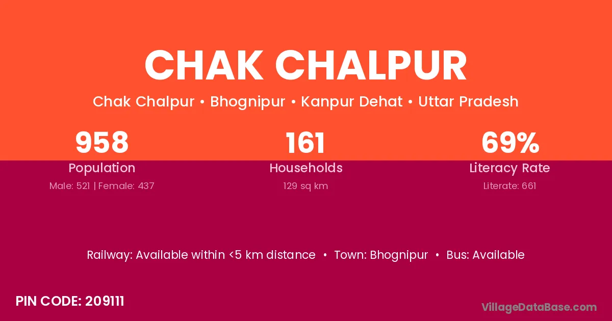 Chak Chalpur village has a total population of 958 people, of which 521 are males and 437 are females.