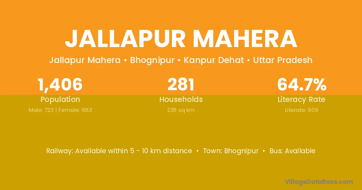Jallapur Mahera village has a total population of 1,406 people, of which 723 are males and 683 are females.