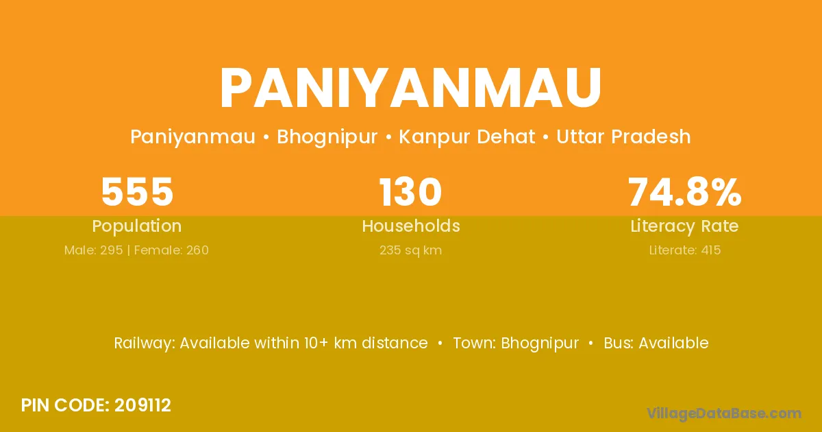 Paniyanmau village is located in the Bhognipur Tehsil of the Kanpur Dehat district in Uttar Pradesh .