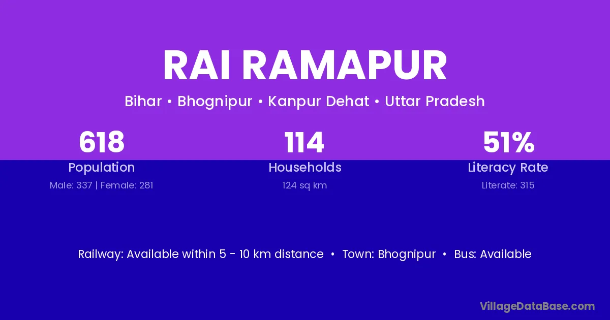 Rai Ramapur village has a total population of 618 people, of which 337 are males and 281 are females.