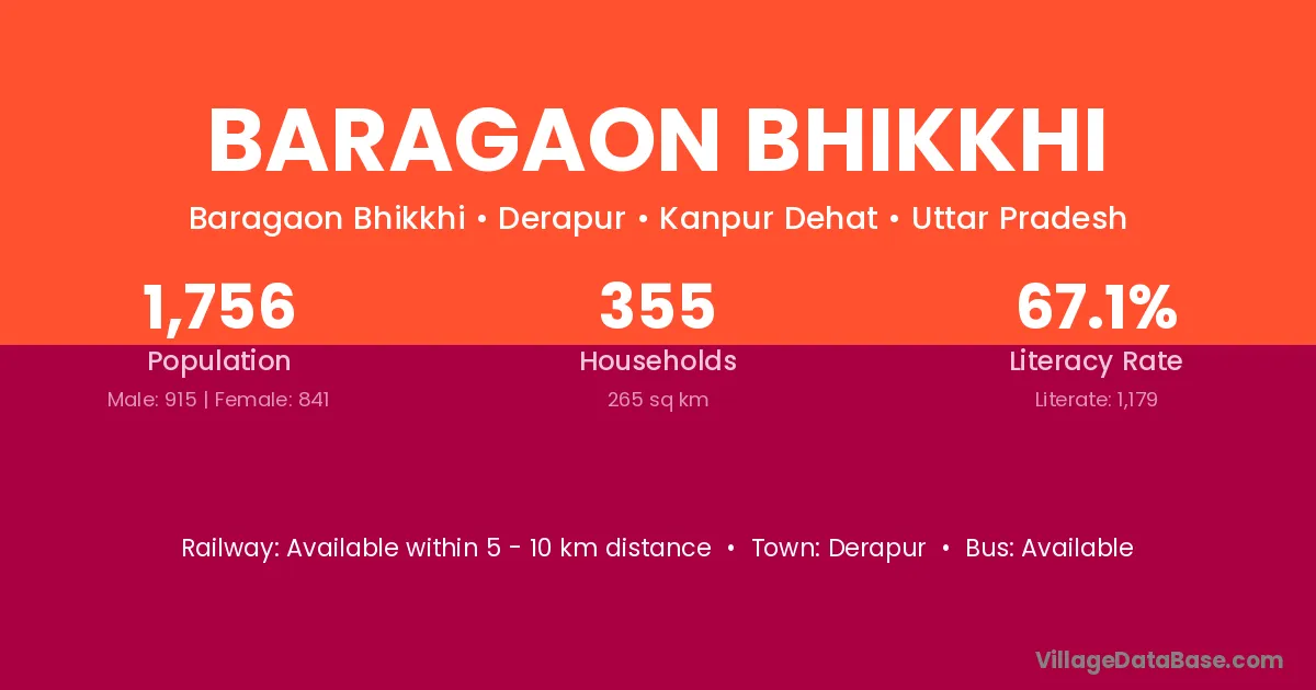 Baragaon Bhikkhi village has a total population of 1,756 people, of which 915 are males and 841 are females.
