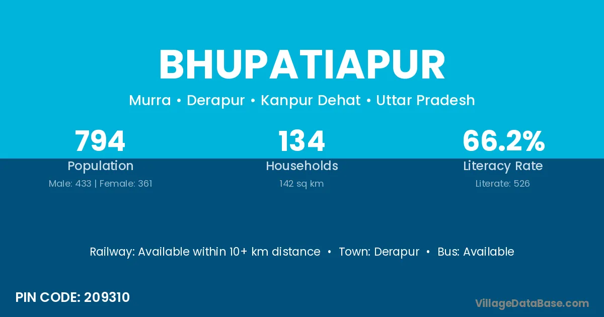 Derapur is the nearest town to Bhupatiapur village for major economic activities