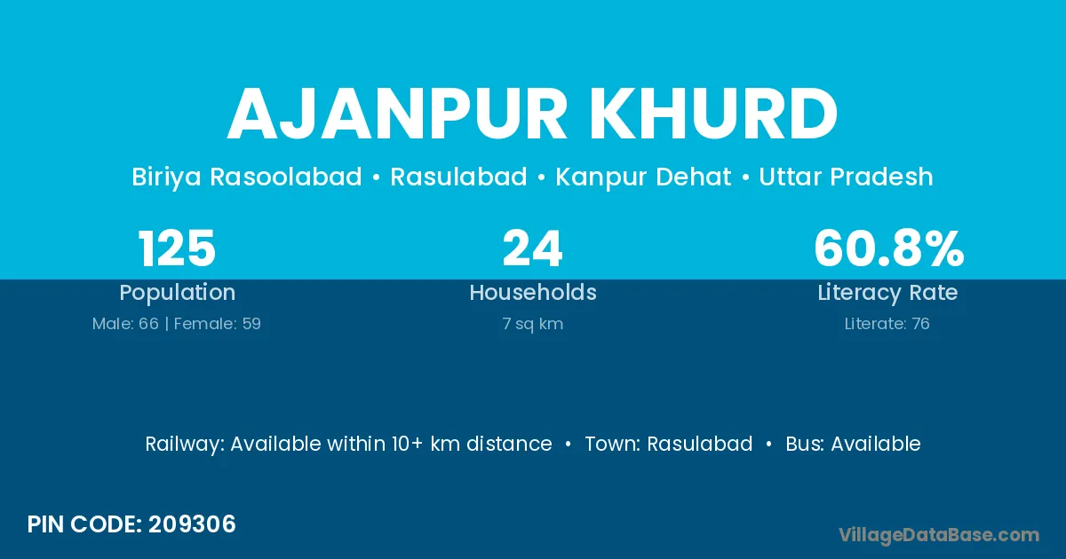 Ajanpur Khurd village has a total population of 125 people, of which 66 are males and 59 are females.