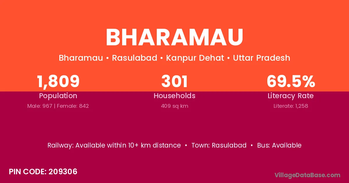 Bharamau village has a total population of 1,809 people, of which 967 are males and 842 are females.