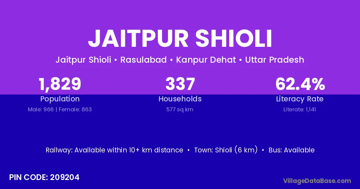 Jaitpur Shioli village has a total population of 1,829 people, of which 966 are males and 863 are females.