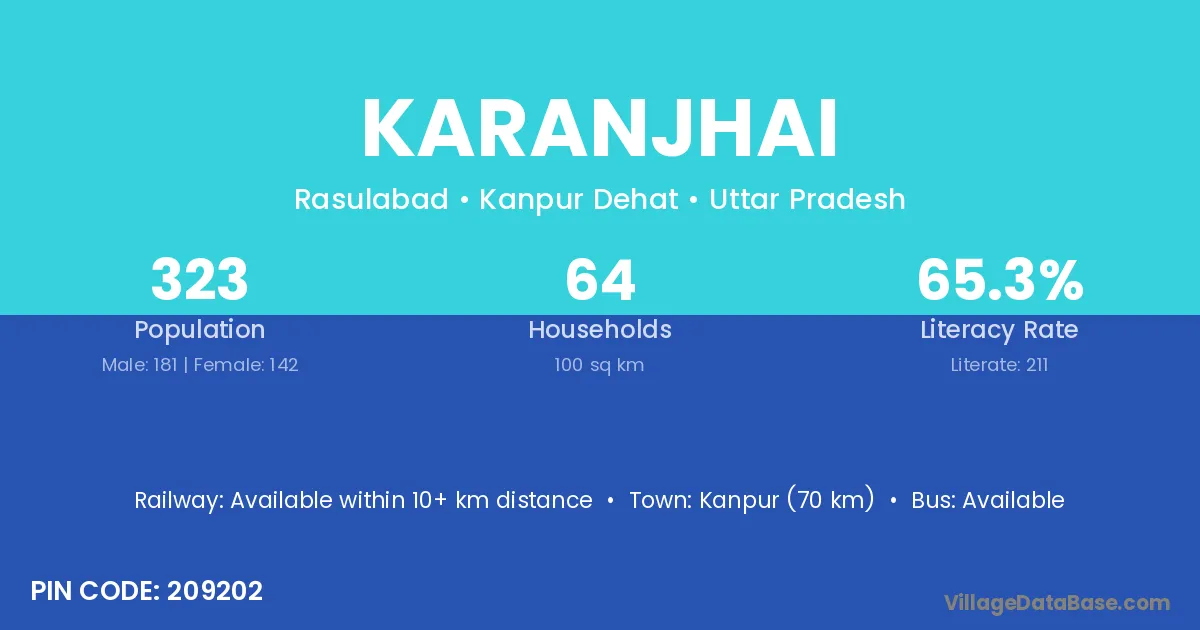 Kanpur (70 km) is the nearest town to Karanjhai village for major economic activities and is located approximately 70 km away.