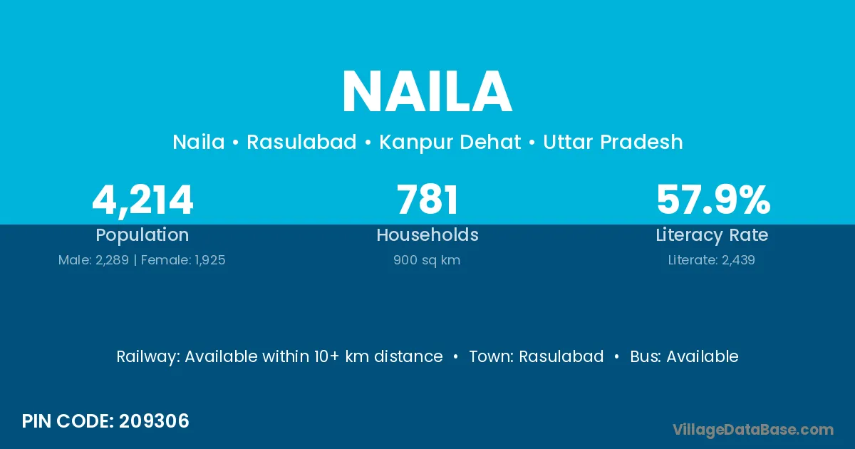 According to Census 2011 information, the village code of Naila village is 209306.