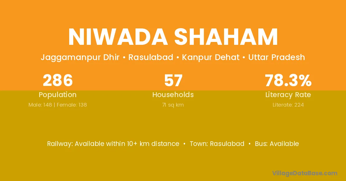 Rasulabad is the nearest town to Niwada Shaham village for major economic activities