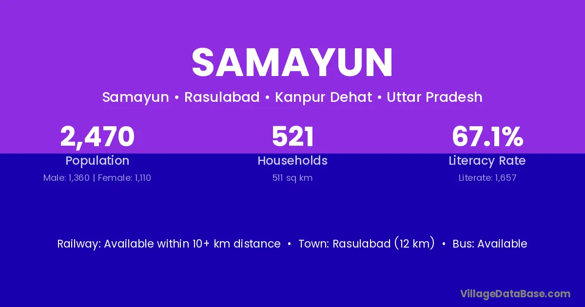 Rasulabad (12 km) is the nearest town to Samayun village for major economic activities and is located approximately 12 km away.