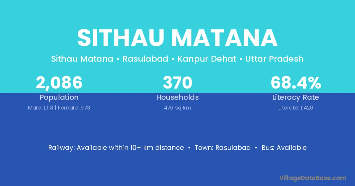 Sithau Matana village has a total population of 2,086 people, of which 1,113 are males and 973 are females.