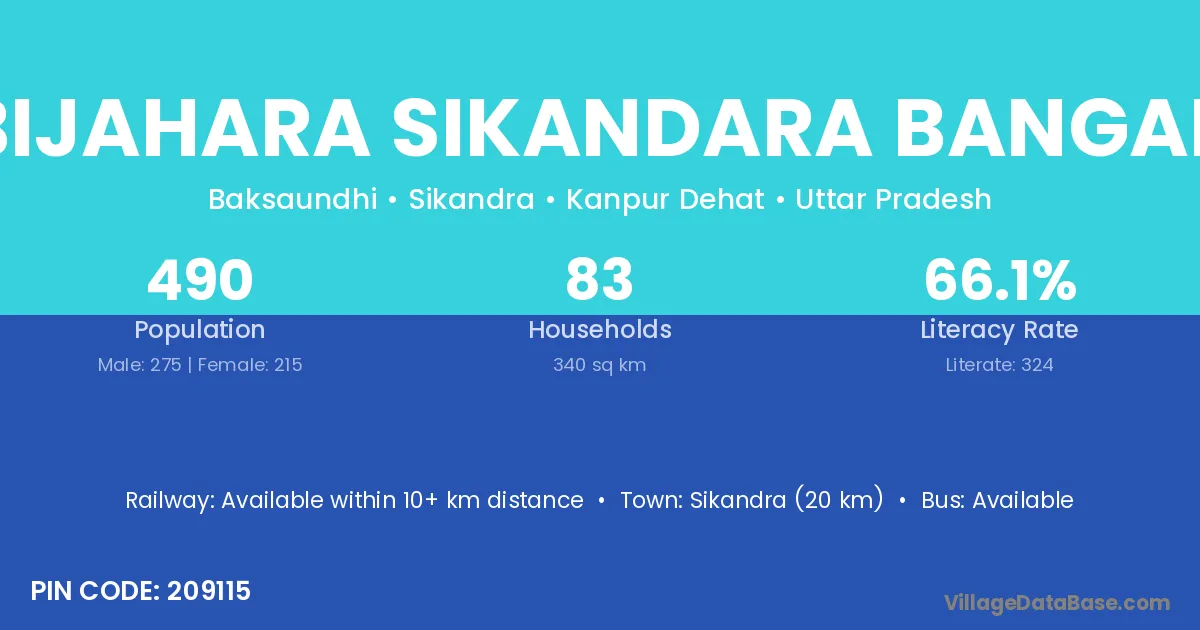 Bijahara Sikandara Bangar village has a total population of 490 people, of which 275 are males and 215 are females.