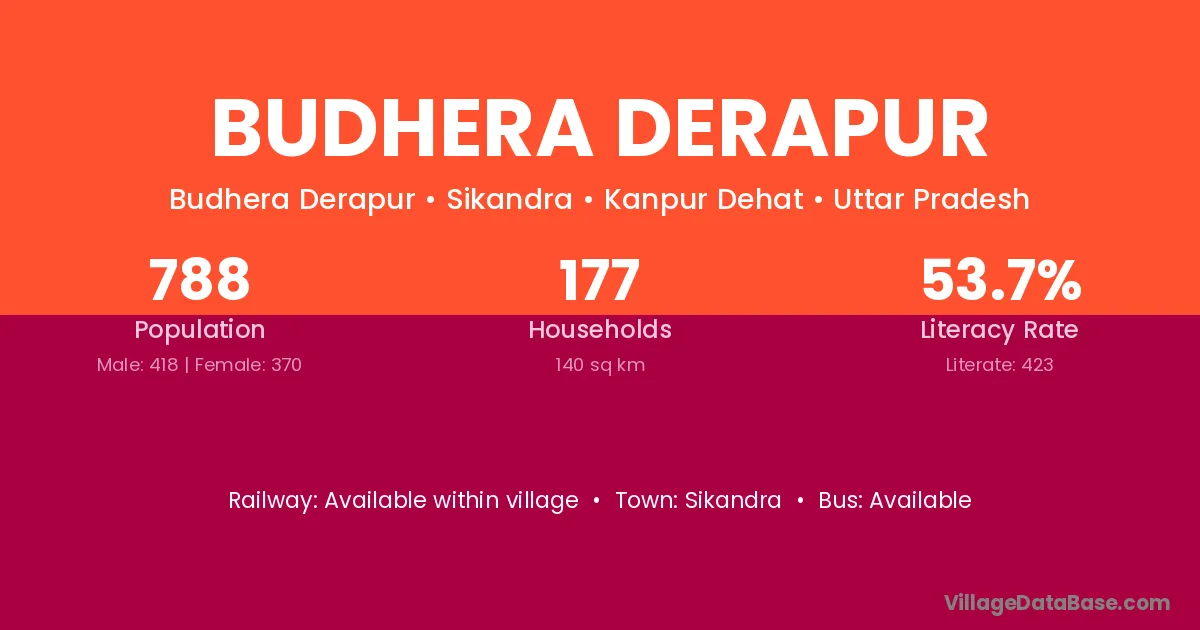 Sikandra is the nearest town to Budhera Derapur village for major economic activities