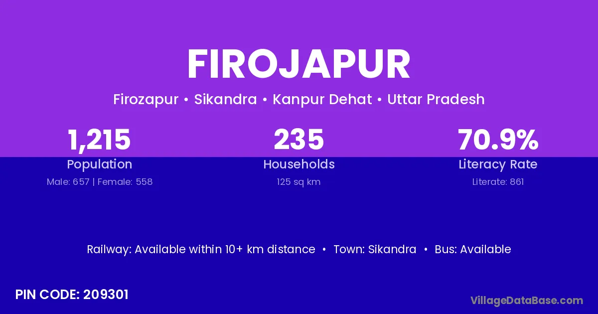 Sikandra is the nearest town to Firojapur village for major economic activities