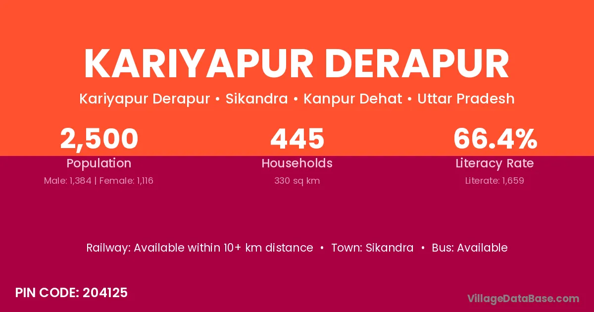 There are approximately 445 households in Kariyapur Derapur village.
