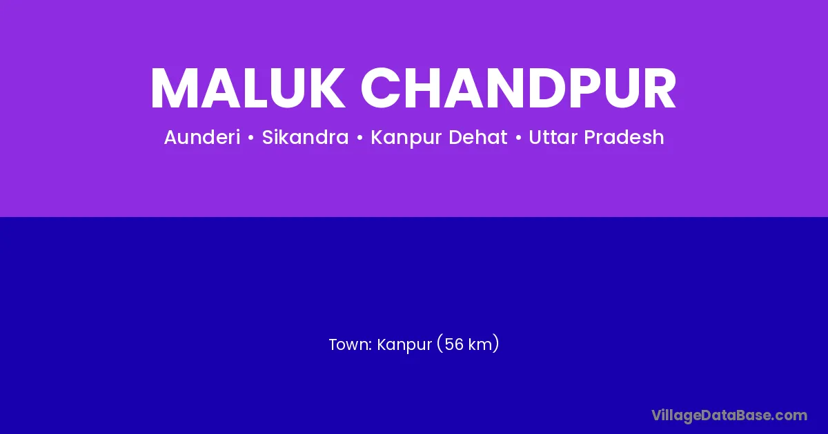 Kanpur (56 km) is the nearest town to Maluk Chandpur village for major economic activities and is located approximately 56 km away.