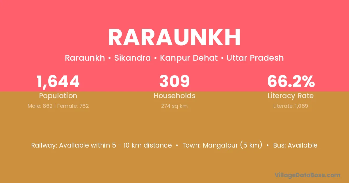 Raraunkh village has a total population of 1,644 people, of which 862 are males and 782 are females.