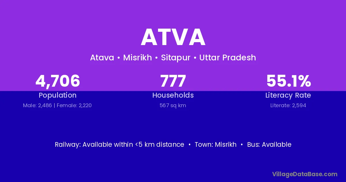 Kanpur Nagar (41 km) is the nearest town to Atva village for major economic activities and is located approximately 41 km away.