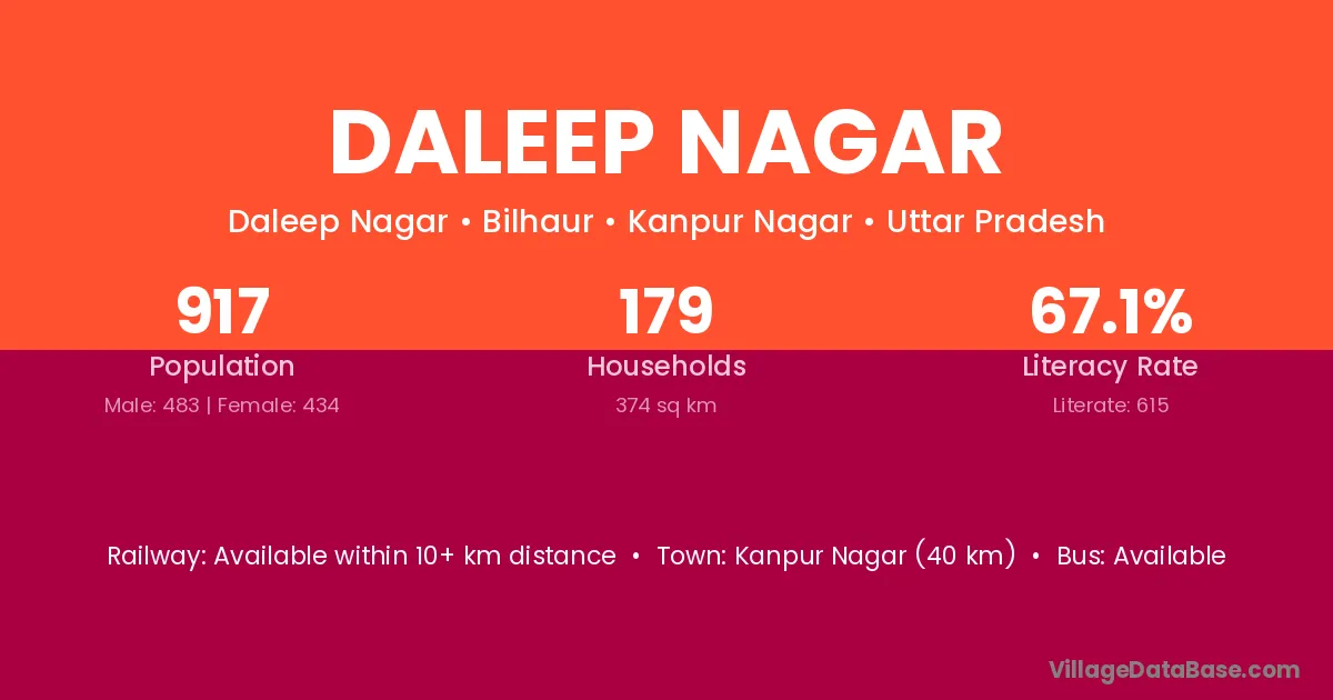 Kanpur Nagar (40 km) is the nearest town to Daleep Nagar village for major economic activities and is located approximately 40 km away.