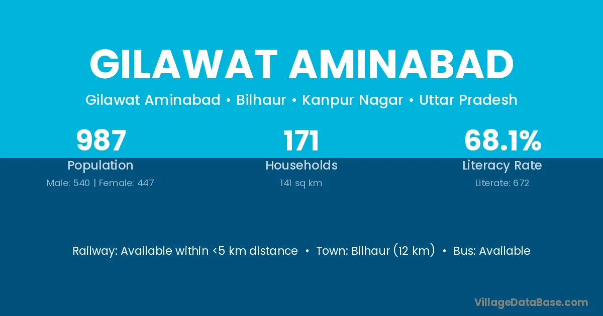 Bilhaur (12 km) is the nearest town to Gilawat Aminabad village for major economic activities and is located approximately 12 km away.